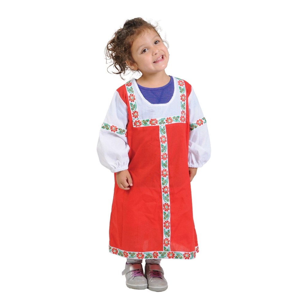 Russian Sarafan Girl - Dance to traditional Russian music in this sarafan folk dress! The brightly colored, patterned dress represents the traditional folk dance costume of Russia.